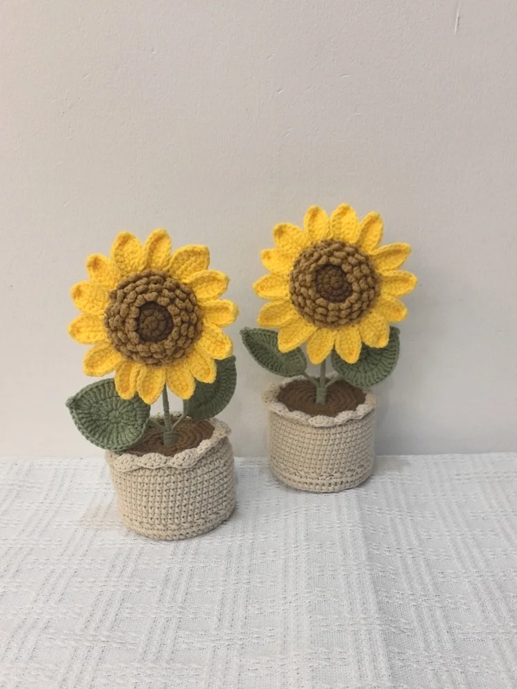 Hand-knitted Flower Crochet Sunflower Coconut tree Fake Bouquet Artificial Flowers For Home Table Decor Flower Kid Home Deco