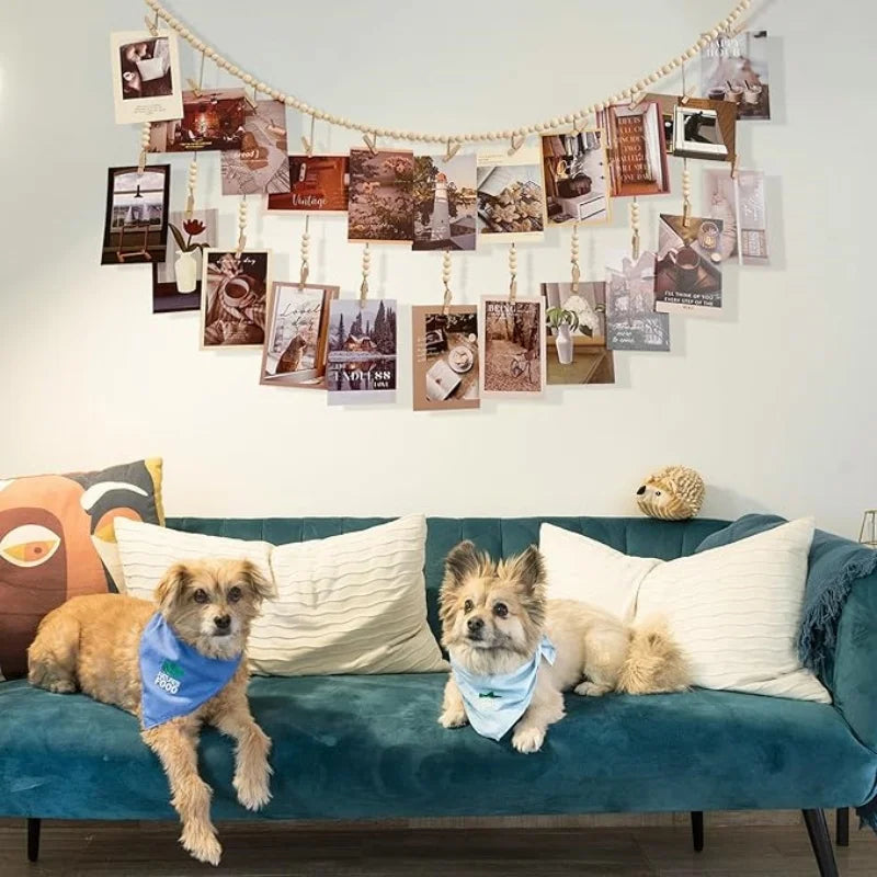 Hanging Photo Display Wooden Bead Garland Boho Wall Hanging for Bedroom Living Room Dorm Party Decor Teen Girl Gifts