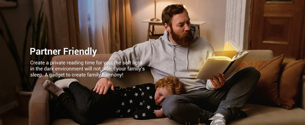【3 Brightness Levels】30%, 60%, 100% brightness available, allows you to choose the perfect brightness to keep your eyes comfortable, enjoy your time reading in bed without disturbing your roommate. Short press to switch the brightness, long press to turn the book light off. Brightness memory function, it will remain the brightness level you selected before.